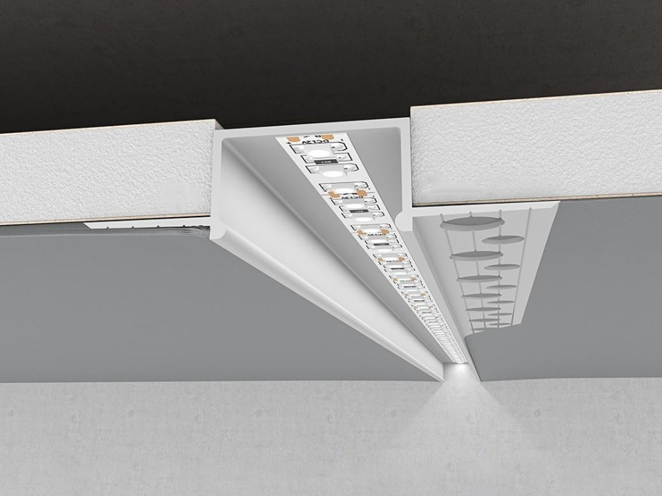 Este proiectat pentru montaj îngropat în pereți și tavane, oferind un finisaj estetic impecabil. Realizat din aluminiu anodizat argintiu, acesta asigură durabilitate și un aspect modern. Cu o lățime compatibilă cu benzi LED de până la 20 mm, permite obținerea unei linii continue de lumină, fără efect de puncte vizibile. Datorită aripilor coborâte, se integrează perfect în tencuială, creând un design minimalist și elegant. Ideal pentru proiecte de iluminat arhitectural și decorativ.