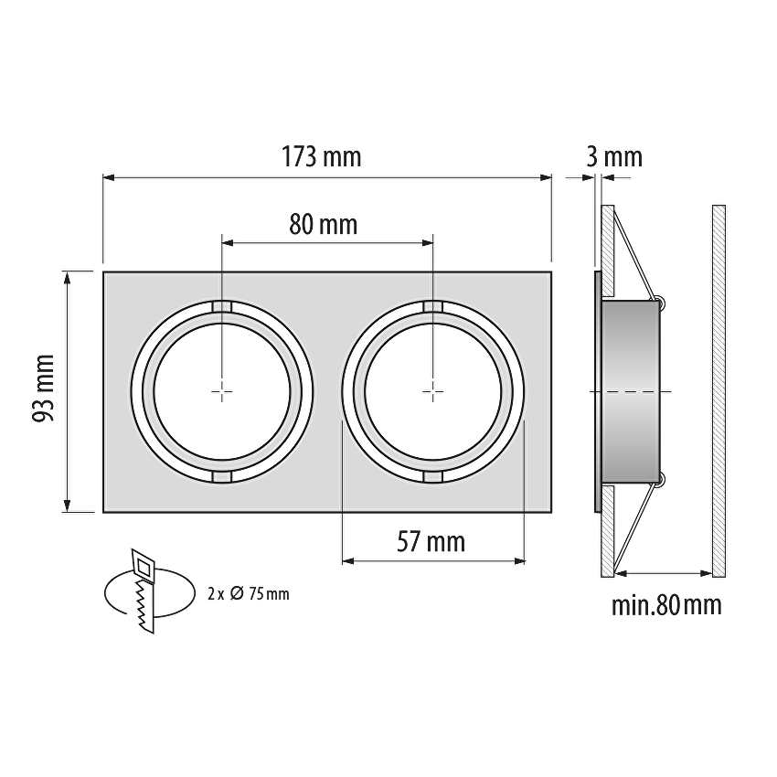 Rama incastrabila patrata pentru 2 spoturi LED GU10 directionabila