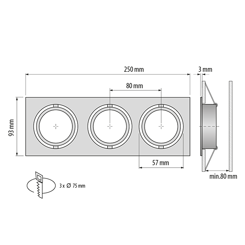 Rama incastrabila patrata pentru 3 spoturi LED GU10 directionabila