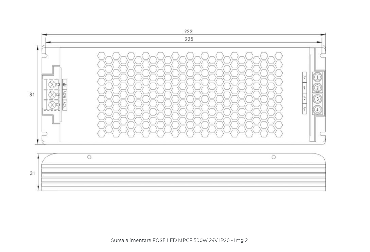 Dimensiuni (L x l x h): 232 x 81 x 31 mm