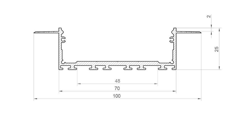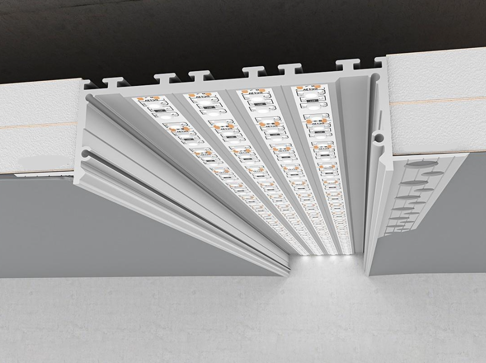 Acest profil LED incastrat este proiectat special pentru instalarea in panourile GK cu grosimi de pana la 12,5 mm, oferind o solutie eficienta si moderna pentru iluminatul arhitectural. Cu o capacitate de 5-6 benzi LED, este ideal pentru aplicatii ce necesita o lumina puternica si omogena. Designul sau permite o integrare perfecta in tavane suspendate si pereti din gips-carton, fiind potrivit pentru utilizari in spatii comerciale si rezidentiale. Datorita constructiei sale si a capacului din policarbonat, asigura o distributie uniforma a luminii fara puncte vizibile, oferind un efect vizual placut si elegant.